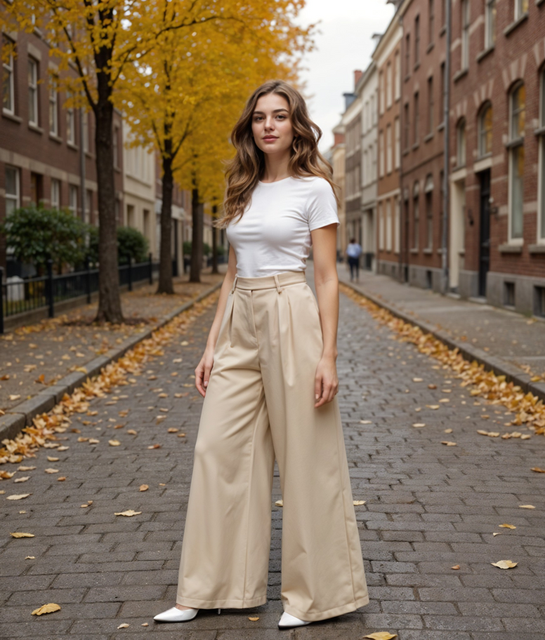 Dit elegante broekpak voor vrouwen combineert tijdloos maatwerk met modern minimalisme. Het ontwerp met een hoge taille en geplooide voorkant zorgt voor een flatterende structuur en biedt de hele dag comfort. Perfect voor zowel kantooroutfits als casual weekendlooks, dit broekpak is een veelzijdige aanvulling op je garderobe.